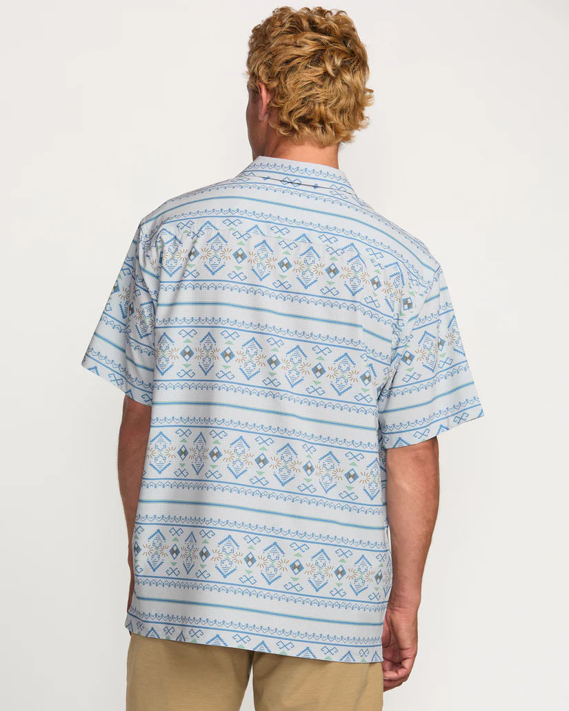 The lightweight Surftrek Perf Short Sleeve Shirt, crafted from partially recycled fabric, features a surf-inspired geometric print. Our regular fit offers a versatile, comfortable look with a collared neckline, chest pocket, and straight hem.